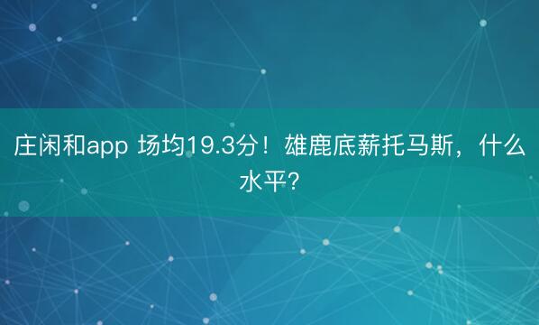 莊閑和app 場均19.3分!雄鹿底薪托馬斯,什么水平?